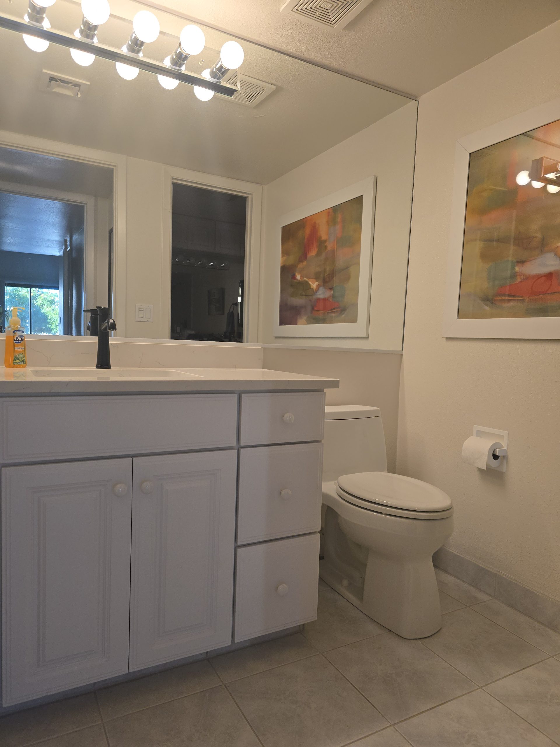 This super clean property features current technology, appliances, media and central A/C. WE OFFER HIGH SPEED INTERNET FOR YOUR DEVICES AND STREAMING SERVICES. No cable TV. Streaming only. Enjoy the Saltillo tile patio, 6 seat glass top outdoor dining set, and large stainless, six-burner gas grill on the “shady side” of the building. This shaded area is a very welcome feature from April through October when Arizona temperatures are the warmest.
